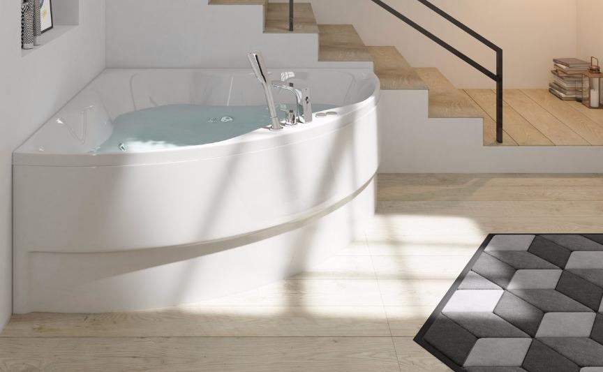 Jets de latón cromado y bombas de bajo consumo. Este modelo destaca por sus formas curvas interiores de diseño vanguardista.