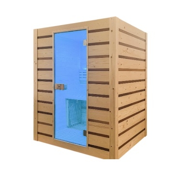 - Capacidad: 3 personas - Aislamiento de lana mineral y barrera de vapor - Banco elevado - Revestimiento exterior de Hemlock y Cedro Rojo e interior de Abachi - Kit de sauna incluido (Termómetro, Cubo, Cazo, Reloj de arena) - Estufa de 3,5 kW incluida - Puerta de vidrio de seguridad - Iluminación LED interior - Equipo de sauna tradicional